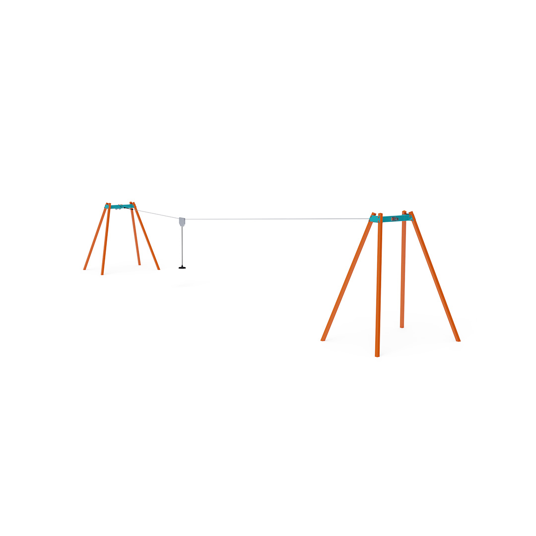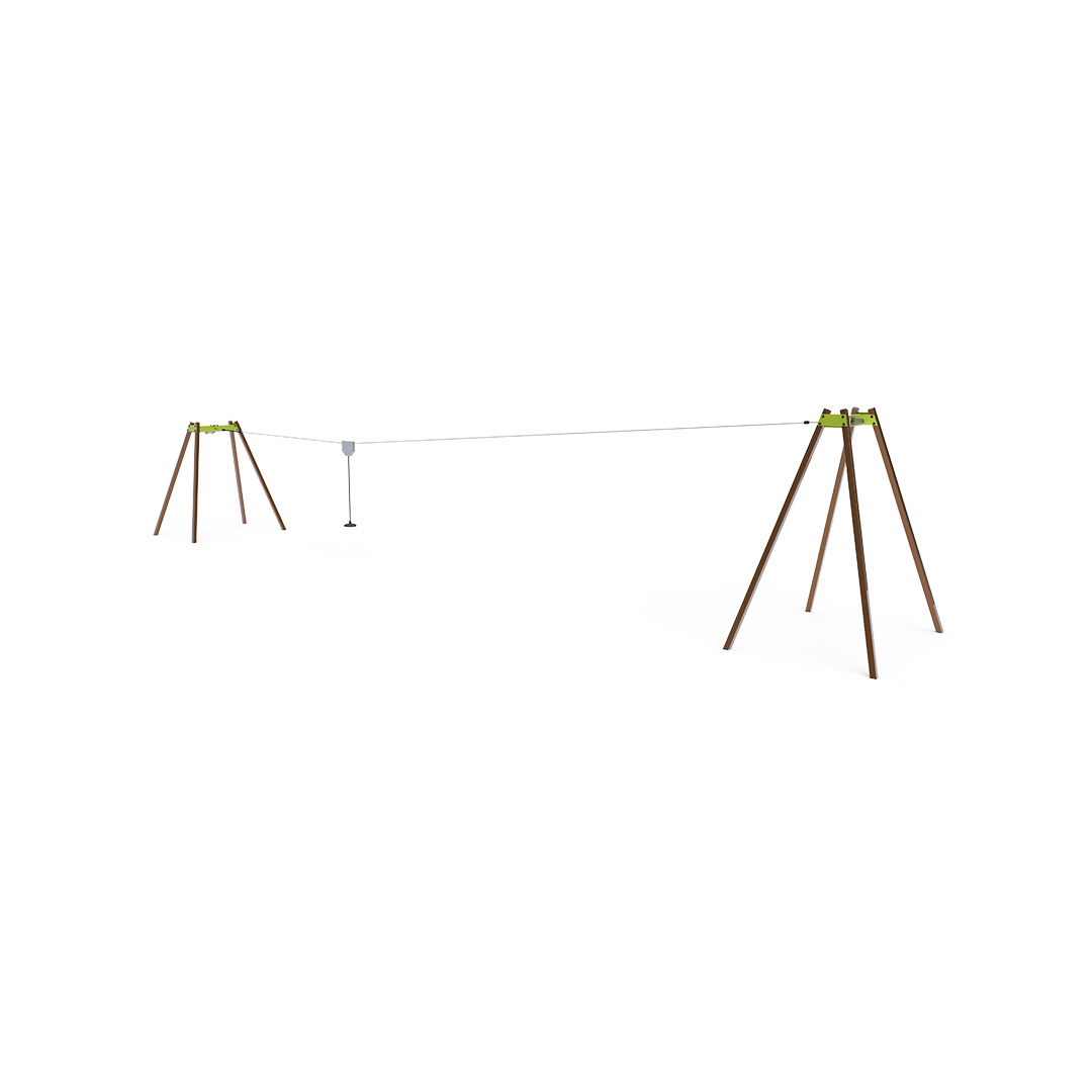 The single-track zip line with a pulley offers children exciting fun in the form of "flying" from one side to the other. As they move, they sit on the seat with their feet in the air, adding a whole new dimension to the playground experience.